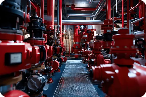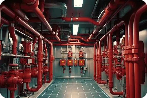 Company for executing all systems related to firefighting and fire alarm systems with reference to NFPA Standards , FM Global Standards , European Standards and Local Standards.